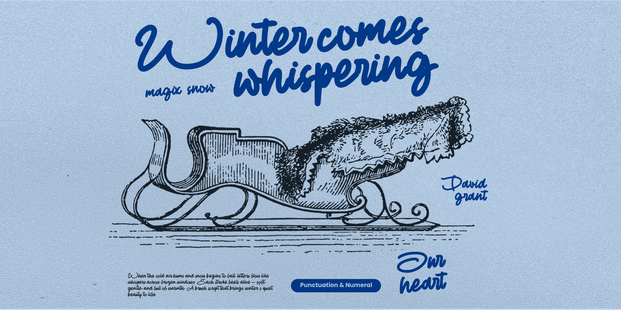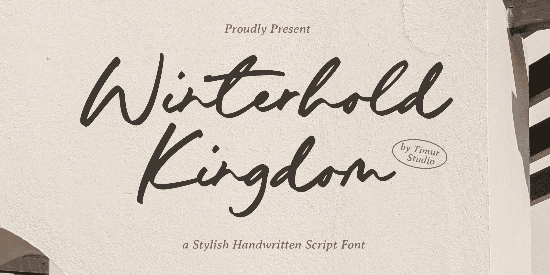 Winterhold Kingdom은 현대적인 캘리그래피 스타일의 손글씨 폰트입니다. 글자가 자연스럽게 이어지고 간격도 안정적이라, 우아하면서 깔끔한 겨울 분위기를 표현하기 좋습니다. 브랜드 디자인이나 초대장, 소셜 미디어 이미지처럼 섬세한 손글씨 느낌이 필요한 작업에 잘 어울립니다.